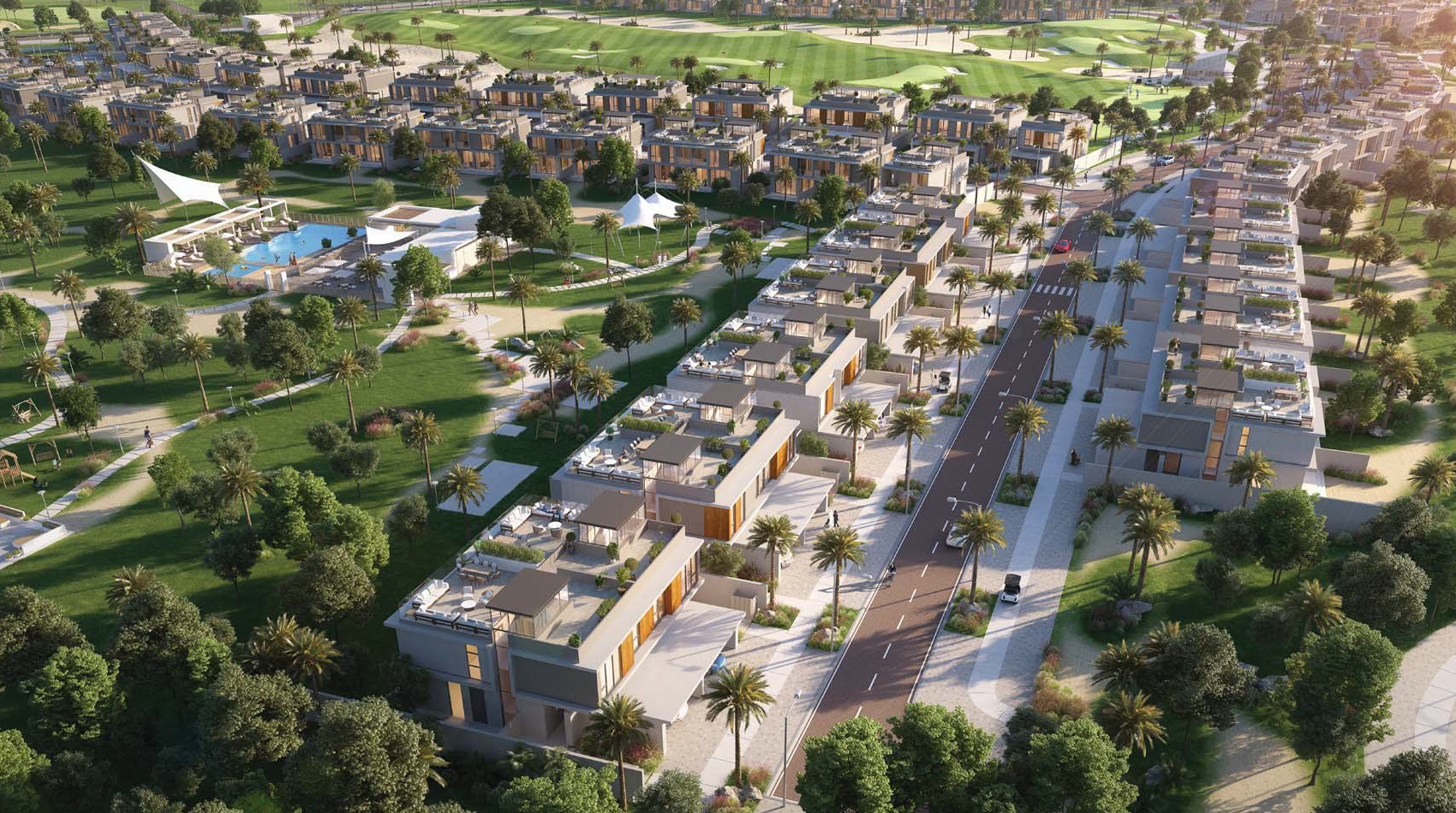 Emaar's Club Villas in Dubai Hills Estate offer luxurious 3 and 4-bedroom villas with modern and contemporary architectural designs. Surrounded by lush green landscapes, the villas provide a stylish and comfortable living experience. The community is known for its abundance of facilities, including an 18-hole championship golf course, clubhouse, and various retail and dining options. The villas boast elegant and contemporary architecture, creating a serene atmosphere complemented by rich materials.