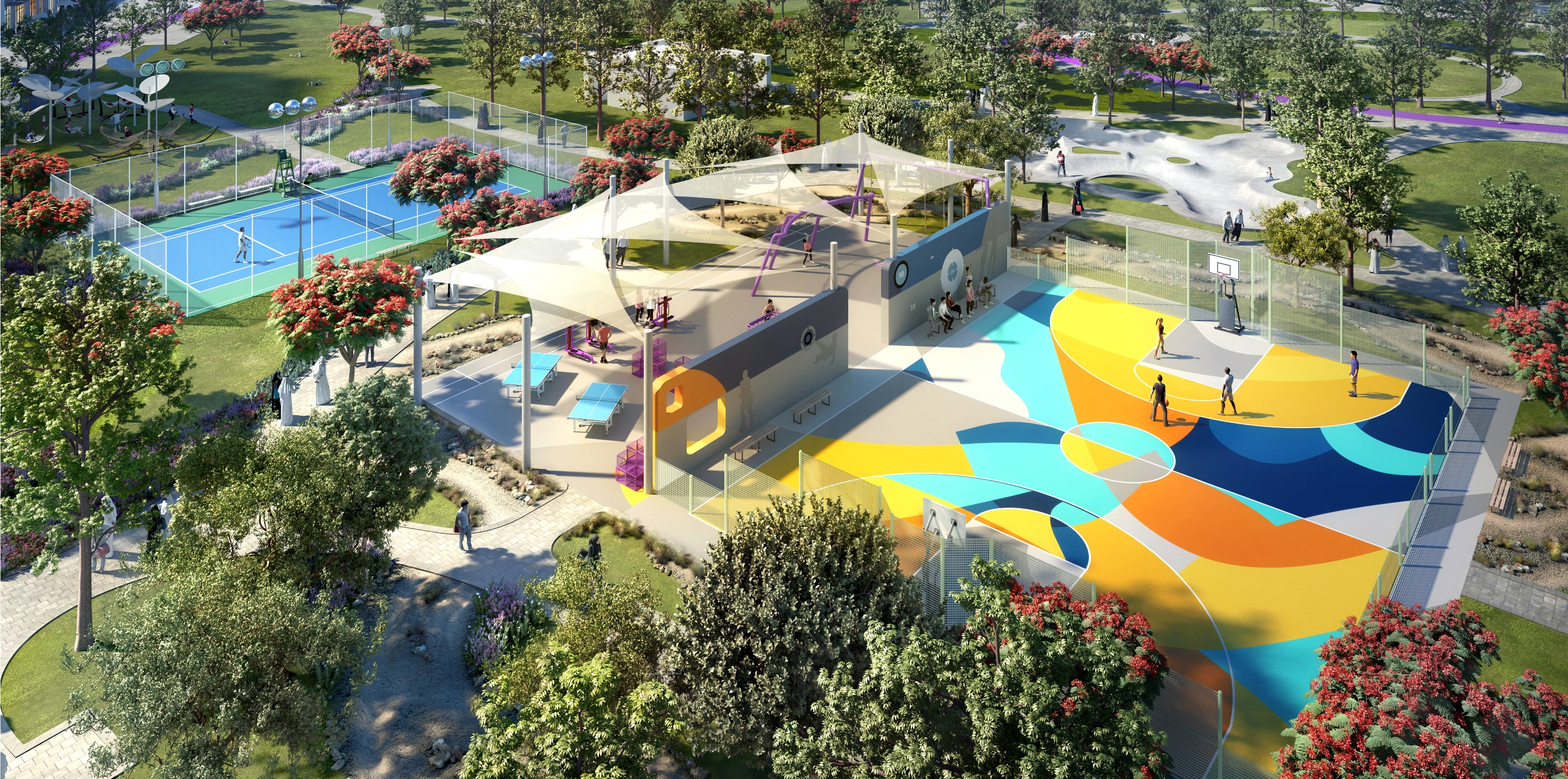 Площадь около 180000 кв.м - в четыре раза больше площади Плас-де-л'Этуаль в Париже - Парк Дубай-Хиллз - это пышная зеленая гавань в самом сердце Dubai Hills Estate. С функциями и удобствами, которые улучшат самочувствие всех жителей Dubai Hills Estate.