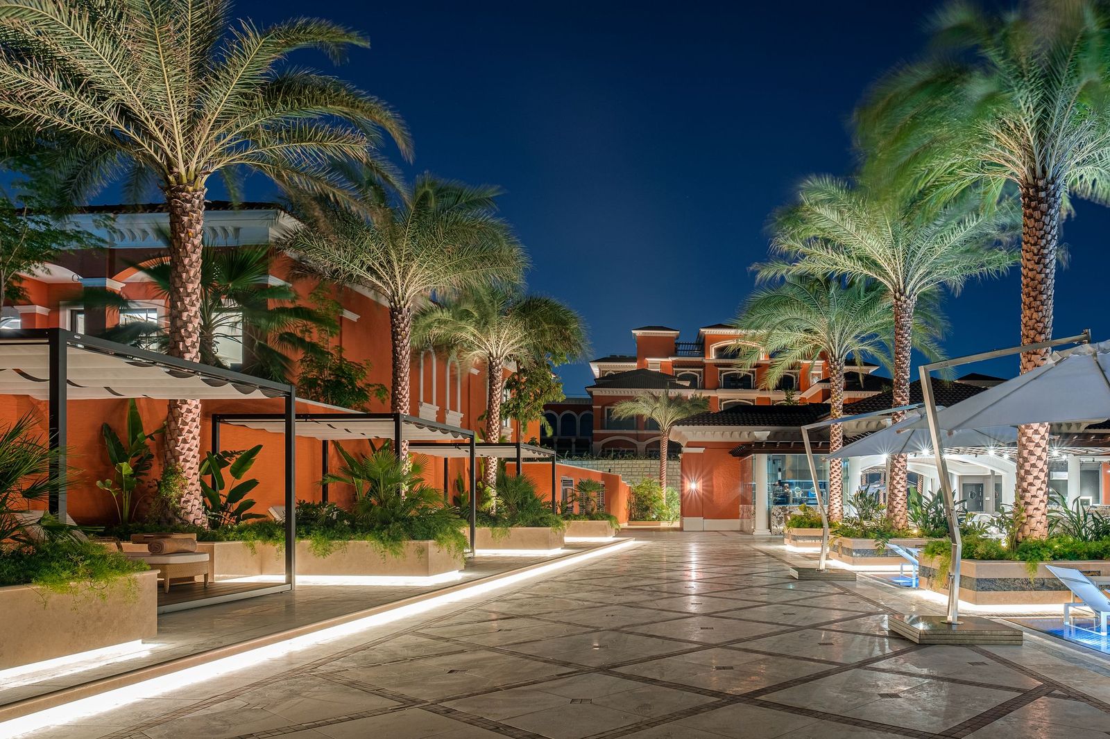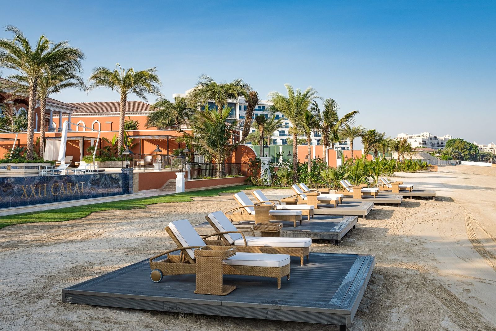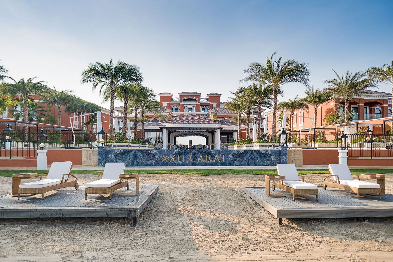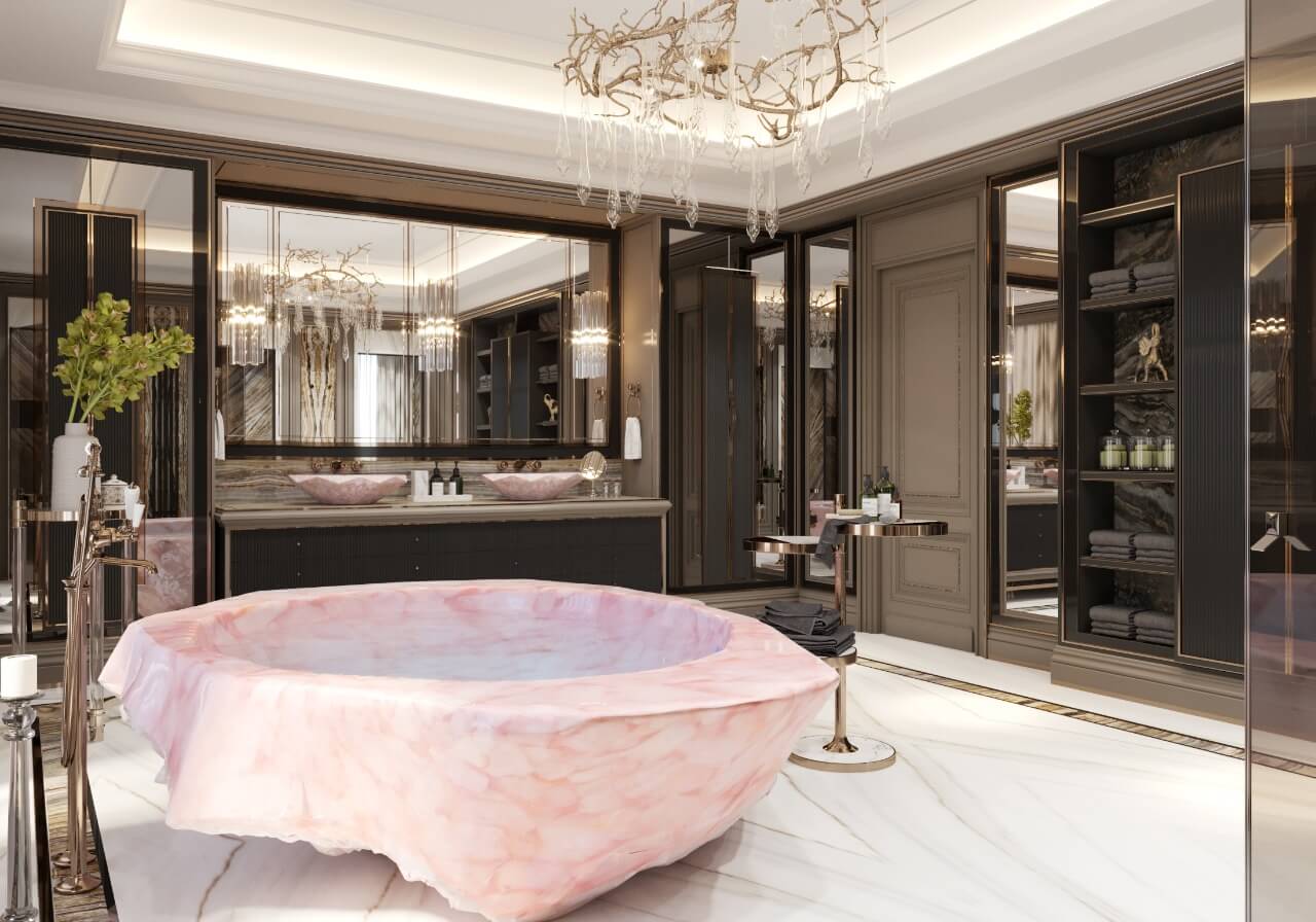 Слияние оштукатуренной кладки экстерьера, украшенной такими элементами, как классическая колонна, беседка террасы, арочные двери и окна прекрасно сочетается с использованием теплых терракотовой отделки, пастельными тонами, керамикой ручной работы и изысканными настенными росписями. Опираясь на принципы классического дизайна, XXII Carat воплотил в себе роскошь и свободолюбие эпохи Возрождения.